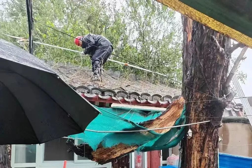 守护居民安全度汛,成了各项工作的重中之重。金融街街道早谋划、细安排、快行动,在“防风险”“守防线”“救急难”等方面全力奋战撑起“平安伞”。7月30日中午时分,大院社区小院胡同10号院的一则险情电话牵动人心。院中一株几十年树龄老树因为雨水浸泡发生树皮脱落,有砸房伤人风险。街道应急指挥部及时响应,安排救援抢险人员现场处理。当抢险人员冒着大雨将松动的树皮清理完毕时,细心的街道工作人员又发现,树木高枝有折断的隐患,于是,街道城管部门负责人果断处置,将有折断压房风险的枝条及时锯除,消除安全隐患。