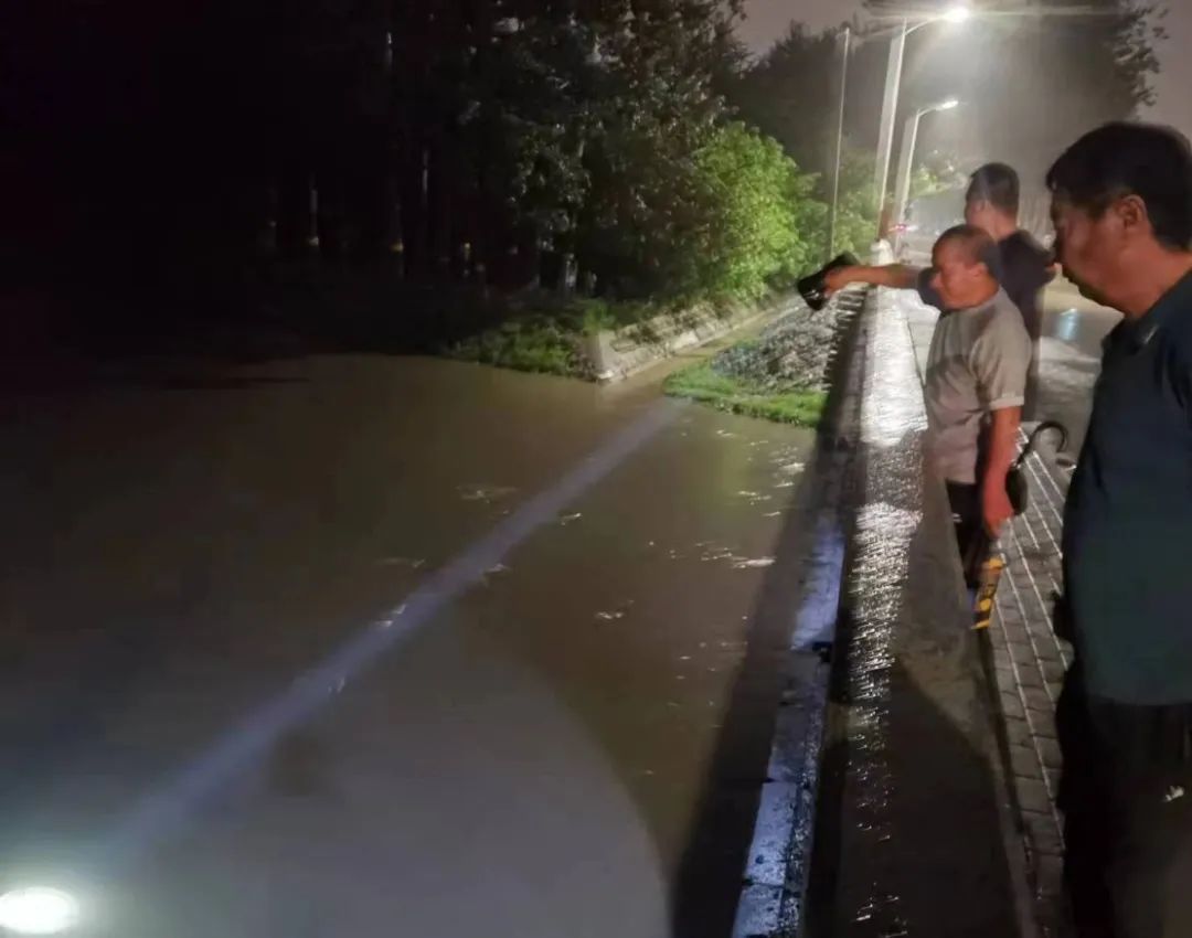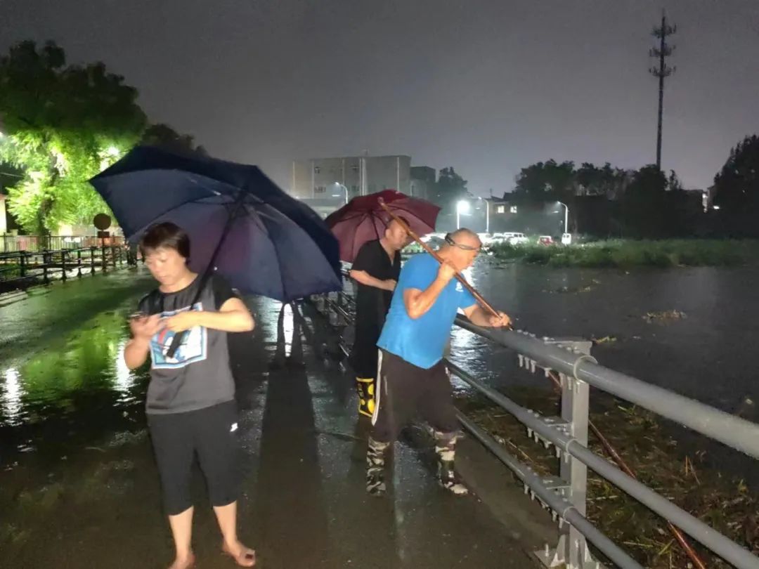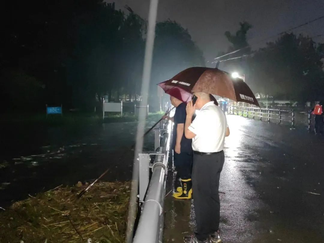 7月31日傍晚至8月1日凌晨,辖区重点河道两侧村庄村两委及包村干部、工作人员等持续到村域内河道检查水位与河道走水情况,实时监测水位情况,并在重点路口疏导过往行人和车辆、及时清理河道两侧杂草,确保市民生命安全,河道排水顺畅。