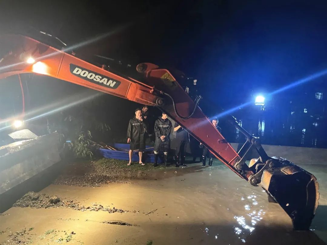 风雨中,30余人按照镇党委、政府统一部署协同奋力作战,将桥两侧的水草与河床内堵塞排水的杂物进行有序清理,并同步开展抽水作业,经过数小时的紧急抢险作业,最终将险情消除。
