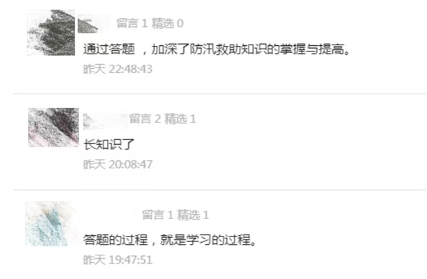 线上知识问卷获得了不少群众的留言点赞,参与者刘先生表示,“这样的形式生动又有意义,而且便于传播,让大家在享受答题的同时学到了不少知识”,西罗园街道防汛知识问卷答题活动仍在火热进行中,除了向市民发布知识问卷,街道还将陆续开展安全知识讲座、防灾减灾演练、应急救护培训,不断提高群众防汛知识、增强应对极端天气的能力,为今后保障安全度汛、防灾减灾打好基础。