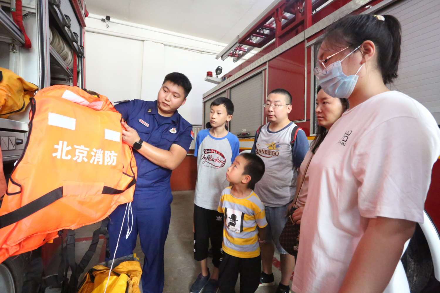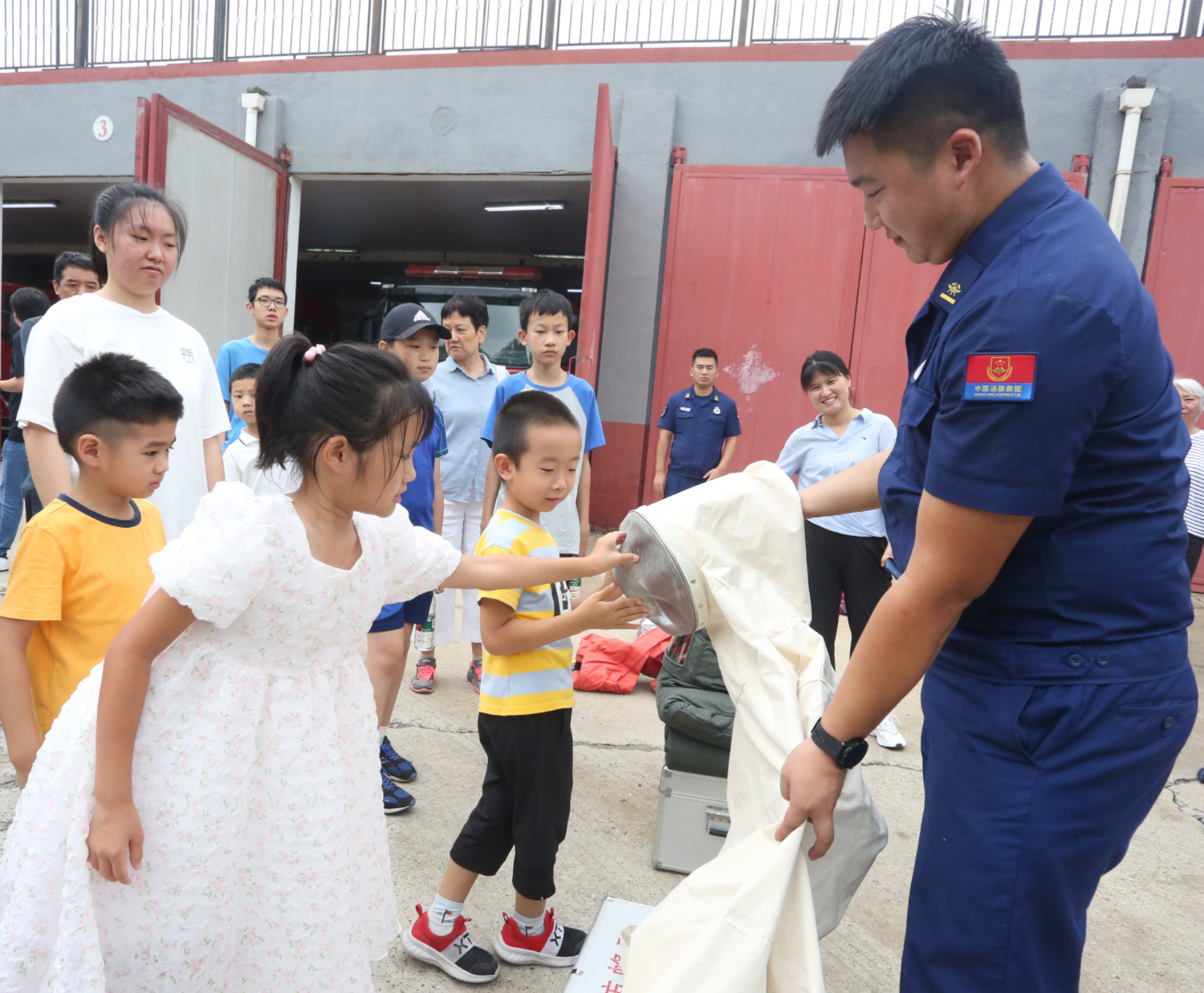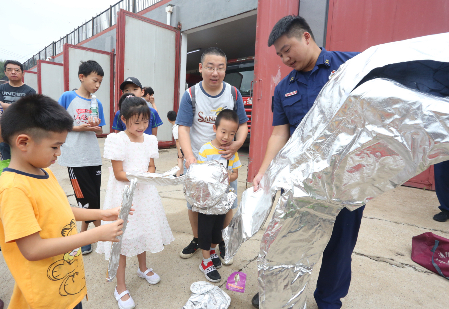 8月2日,丰台南苑街道京粮悦谷社区组织开展暑期学生进“红门”学消防活动。在南苑消防救援站,学生们走进消防车库参观了消防车辆和装备器材,消防员细致地讲解了各类车辆、器材的作用和功能,还组织学生们穿戴消防战斗服,体验了当消防员的风采。“原来消防服又重又闷热,消防员的工作真的很辛苦!”,学生们纷纷伸出大拇指为消防员叔叔点赞。