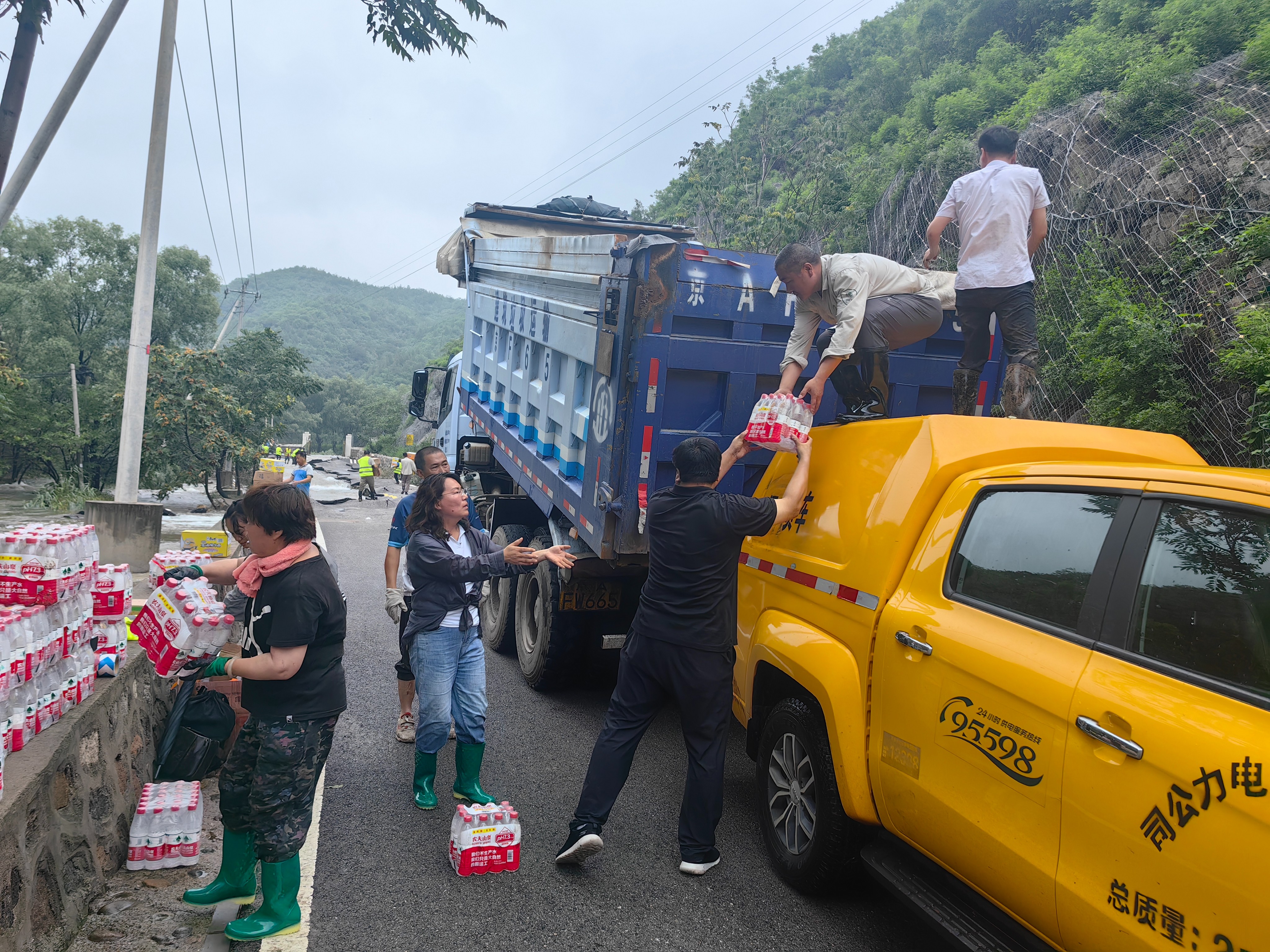 8月2日中午,满载生活应急物资的车辆到达了南口镇羊台子村。