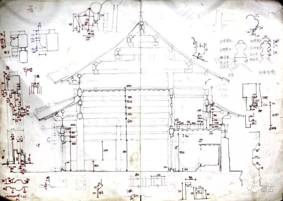 景陵神道碑亭手绘测稿