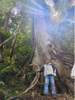 据范光鹏博士介绍,前往亚洲第一高树所在地的路况极其复杂,2辆车先后爆胎。行驶过程中经过多处正在发生泥石流与滑坡的地点。翻越了4000多米的雪山,跨过水流湍急的河流,甚至还冒着危险穿越了施工地所在的山体巨石爆破区域,最终抵达了”亚洲第一高树”附近。