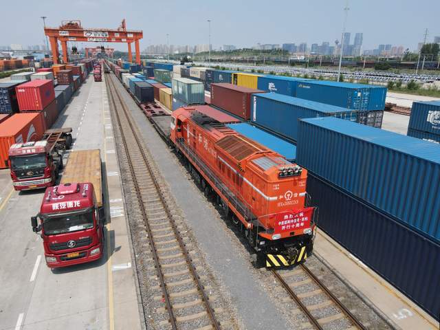 “近几年,郑州大力发展多式联运,推进圃田‘无水港’建设,贯通国际联运运输全过程,节省企业运输时间和物流成本的同时,实现了港口功能向内陆腹地延伸,积极助力河南打造内陆开放高地。”中国铁路郑州局郑州车务段圃田车站党总支书记李文标说。