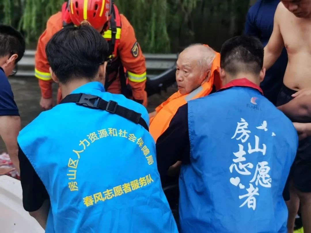 8时许,救援人员借助冲锋舟、水陆两栖车等救灾装备,深入受灾现场,冲锋舟驶过的水域遍布各种漂浮杂物、生活物品等,考验着每一名驾驶员的经验技术。到达现场后,有序组织受灾群众以家庭为单位,优先家庭成员中的老人、儿童、孕妇及患有疾病的人员转移至转运车辆所在地,随后陆续转移至良乡体育馆和丰台南苑家园两个安置点。