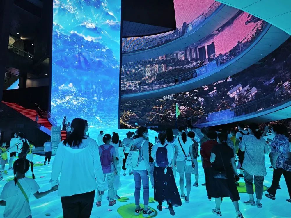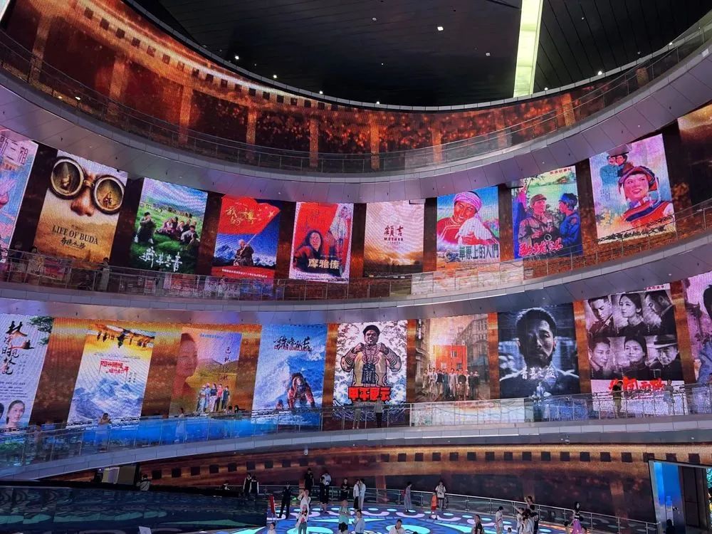 进入博物馆后,大家被一排排电影人的签名和手印吸引,纷纷驻足观看,感悟前辈们用无限热忱铸就起如今中国电影事业的灿烂辉煌。众人随后被高达25米的巨大不规则环形屏幕所震撼,在光影交汇中沉浸式观看了气势恢宏的新时代影片。