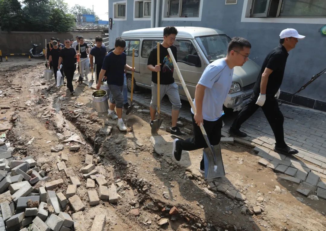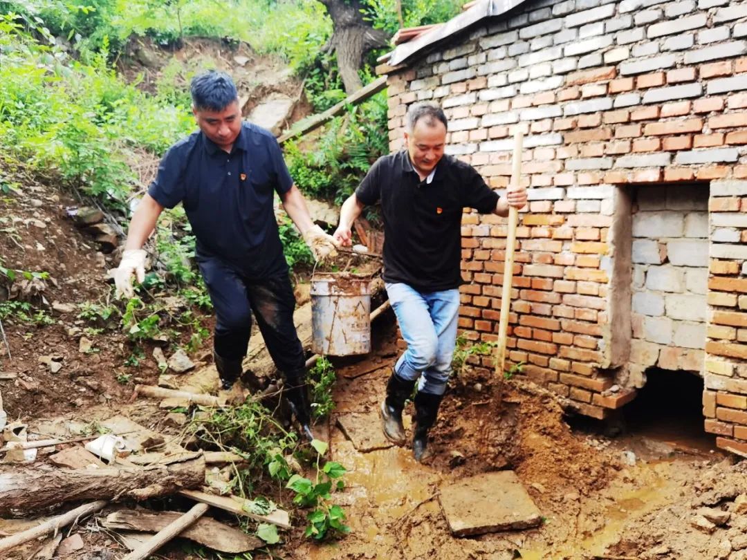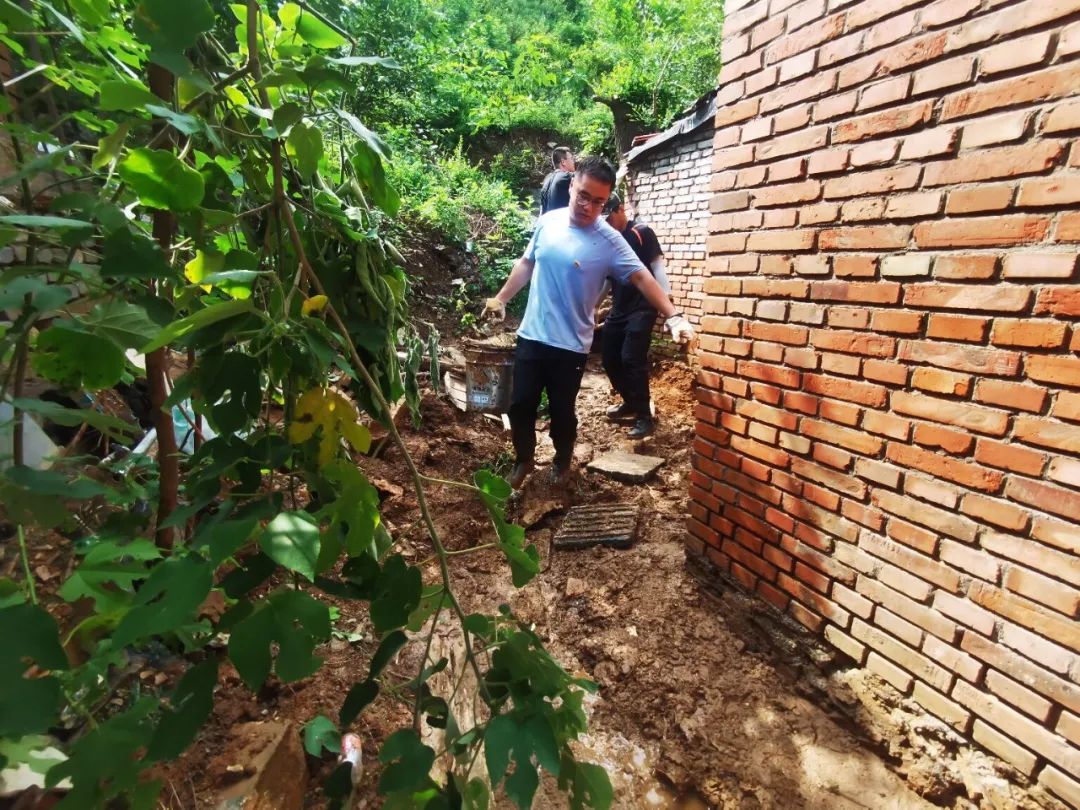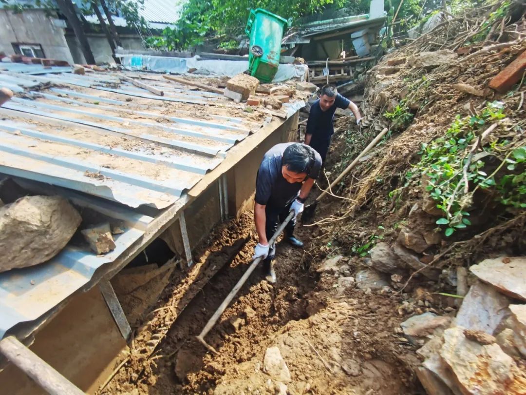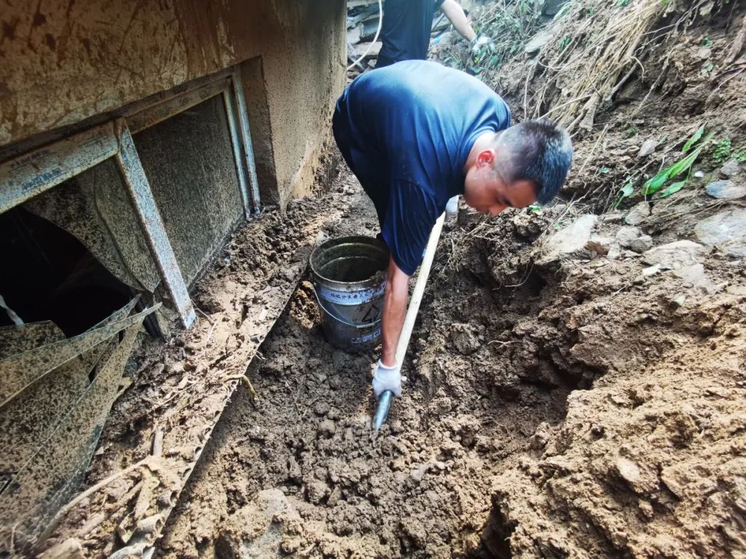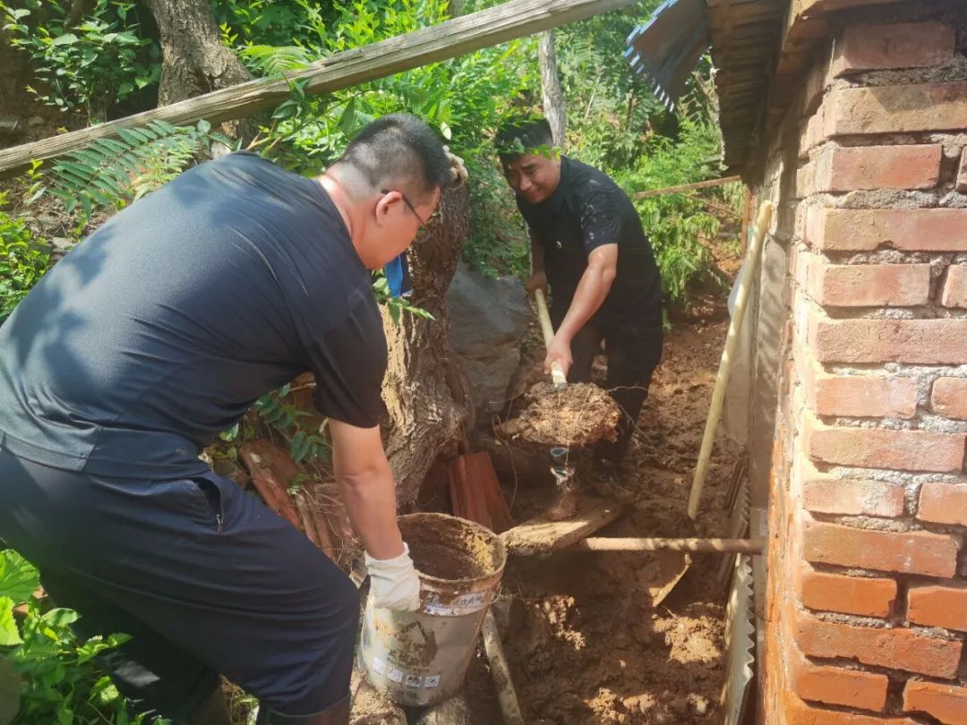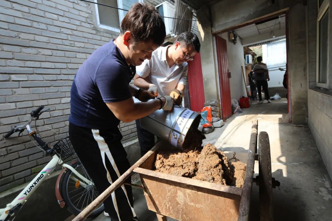 天气闷热,干部们手拿铁锨和铁桶,到达现场后就开始了清理淤泥疏通水渠的工作。他们踏进又厚又重的淤泥中,紧锣密鼓地除淤泥、清垃圾、疏沟渠。他们徒手搬石块,用铁铲刮淤泥、用铲运车运垃圾……一寸一寸地清理,一米一米地推进。他们脸上满是汗珠,但他们来不及擦拭,争取快速地将村落内的沟渠道路疏通,让百姓们用水排水和交通出行尽快恢复正常。