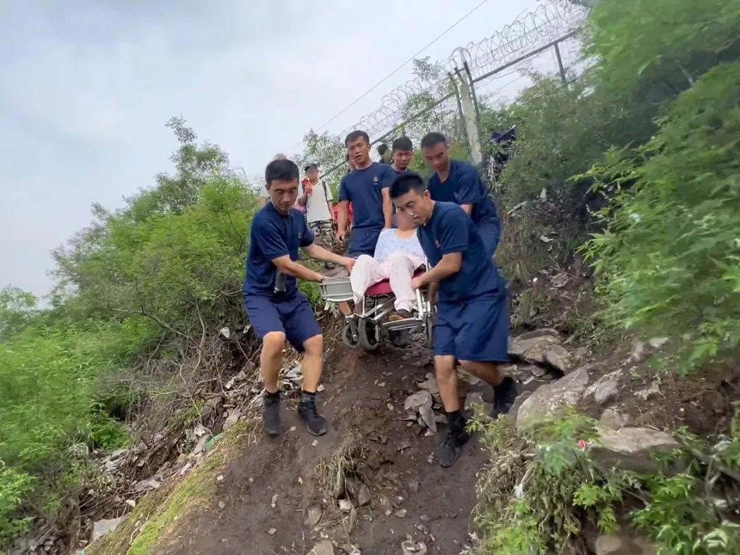 行进路况十分复杂,沿途多处出现塌方和滚石。一侧是随时可能掉落的石块,一侧是洪水汹涌的永定河,十分考验队员们的体力和意志。一半队员被沿途障碍划伤擦伤,但这些并没有影响他们的前进速度,因为每个队员心里都知道,他们是前方受困乘客们的希望,是后续成功救援的基础,必须尽早抵达受困点展开工作。
