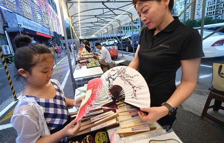 今年,夜市迎来了京珐景泰蓝、前进鞋厂、北京制帽厂、北京剧装厂、红星二锅头、牙雕、料器、月盛斋等十余家中华老字号、非遗项目、民间工艺支摊。不少周边市民前来“寻宝”。张女士告诉记者:“我几乎每年都来,第一年买了个料器坠子和景泰蓝小摆件,还是老货哪!后来还买了双布鞋,这不又来给老头子买二锅头来了。今年还想带孙子看看景泰蓝博物馆,学习学习咱们非遗文化。”