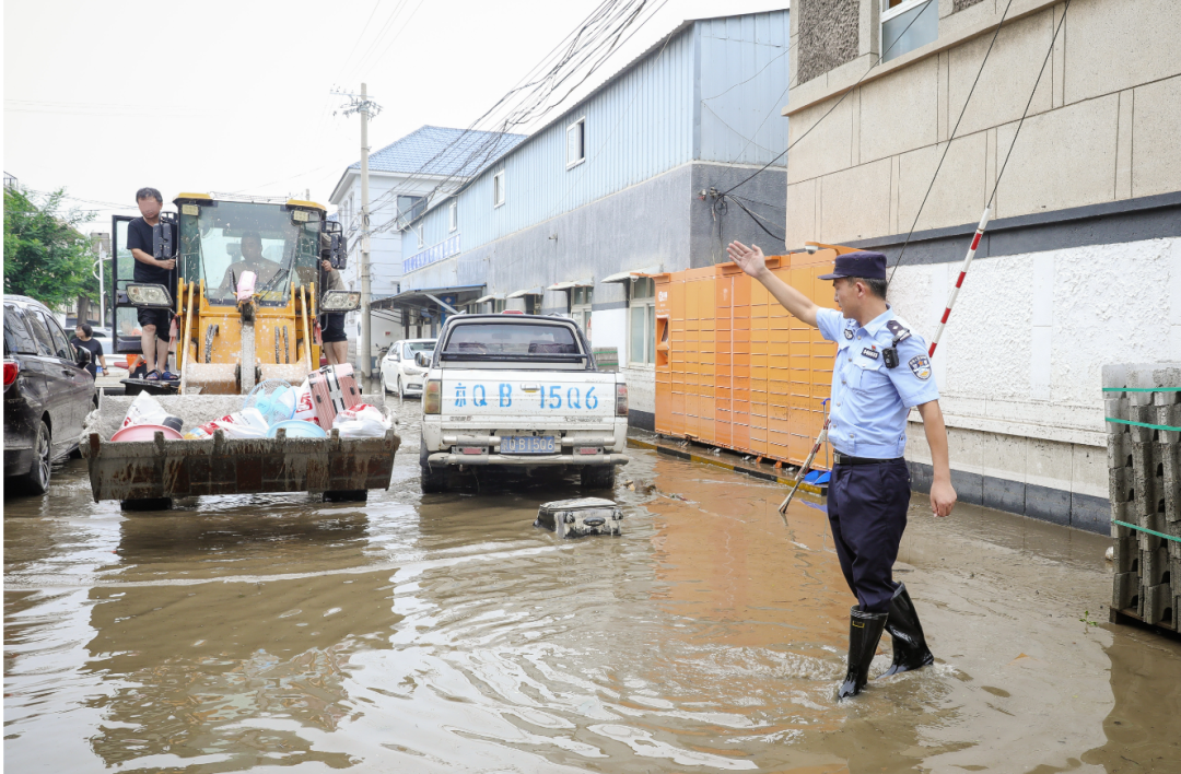 蹚着及膝的积水,房山公安分局石楼派出所所长姚谞和社区民警周刚再次来到双柳树村例行巡查,协调排水、联络村民、组织联防队守护村庄……还有很多要紧的事情等着他们。