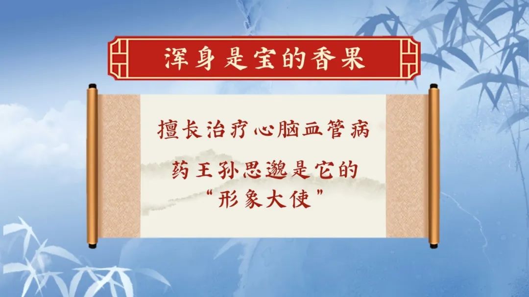 你以为四川人只会吃辣吗?其实他们很懂养生!今天的节目现场,专家委托《养生堂》栏目组寻找两味药食同源的川药,第一味川药被誉为“浑身是宝的香果”。它的果实常常出现在四川火锅当中,它的叶苗能够制作成药膳,入药后更被称为是临床治疗心脑血管疾病的第一药。那么它是什么呢?为什么专家称药王孙思邈是它的“形象代言人”?日常生活中我们又该如何运用这味药材养生又养心呢?