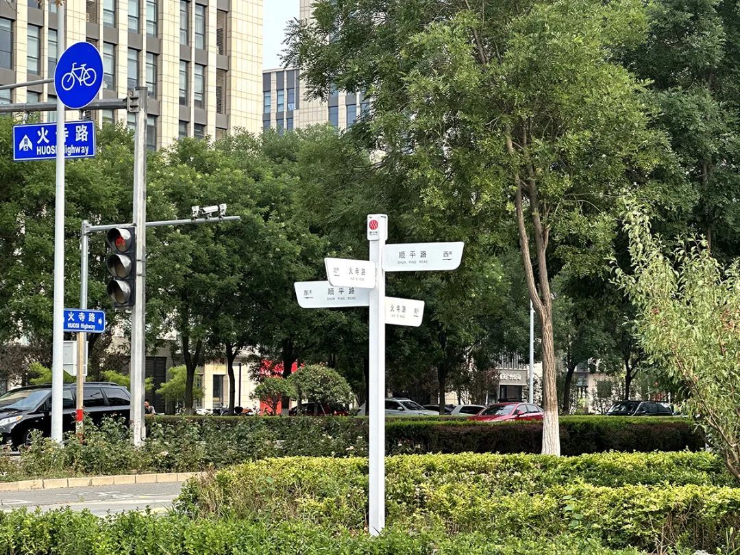 记者在这里看到,改造后的道路两侧简约但不简单。人行步道增设的太阳能座椅、更换的垃圾桶,以及十字路口更新的路引牌,有创意、有巧思的设计随处可见,把后沙峪元素与城市形象巧妙结合。