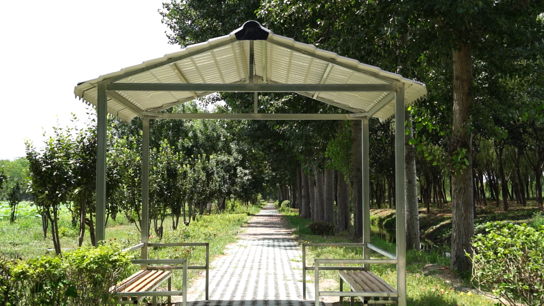 步道沿线自然资源丰富,两侧延伸有观荷台,木质廊桥延伸至荷花田深处,营造清水溪流、绿意环绕,近观荷田,远观花海的质朴宁静氛围。