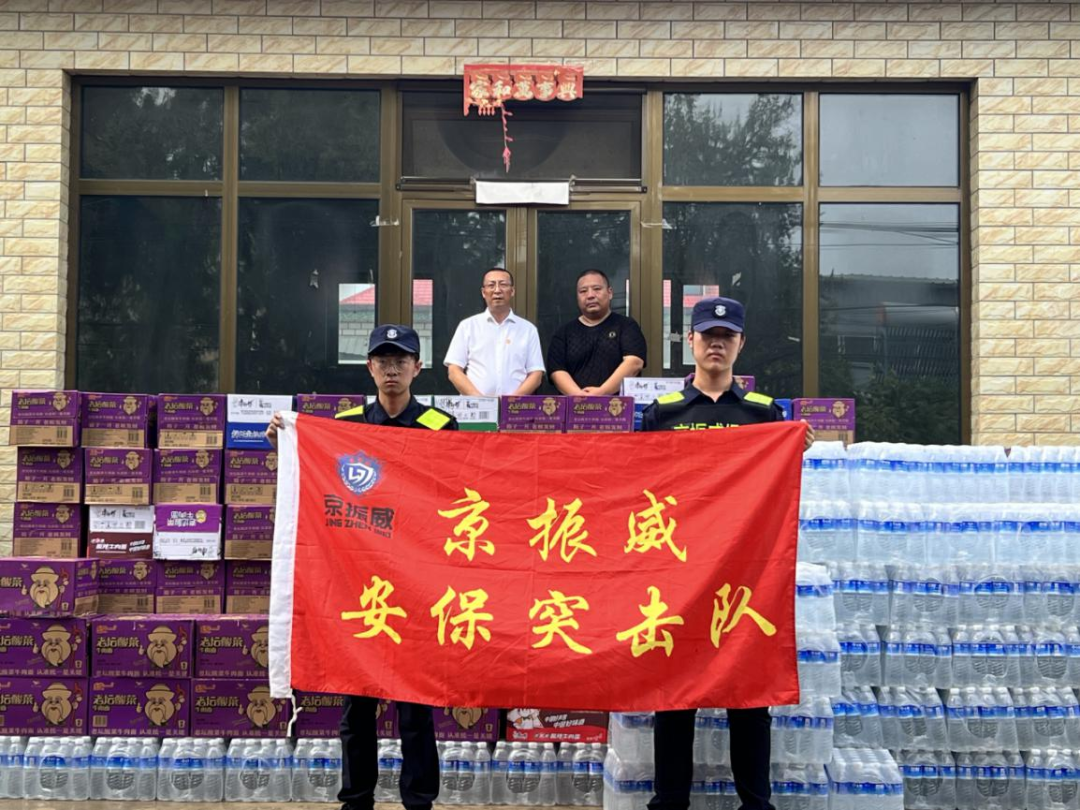 会员企业北京振威保安服务有限公司12人组成抢险突击队,奔赴门头沟九龙东苑4号地小区、潭墅苑小区,执行地下室抽排水、园区淤泥清理任务。向河北涿州受灾群众捐助了价值18500元的200箱方便面、300箱矿泉水、50箱火腿肠,并调配2辆15座客车,公司10多名员工组成救援队参与救助当地受灾群众。