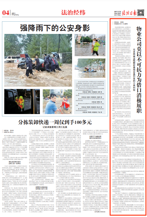 除了邻里纠纷,物业合同纠纷也是雨后常见的纠纷之一。对于业主的不满,物业公司常常拿出“暴雨是不可抗力”作为挡箭牌,试图为自身免责。