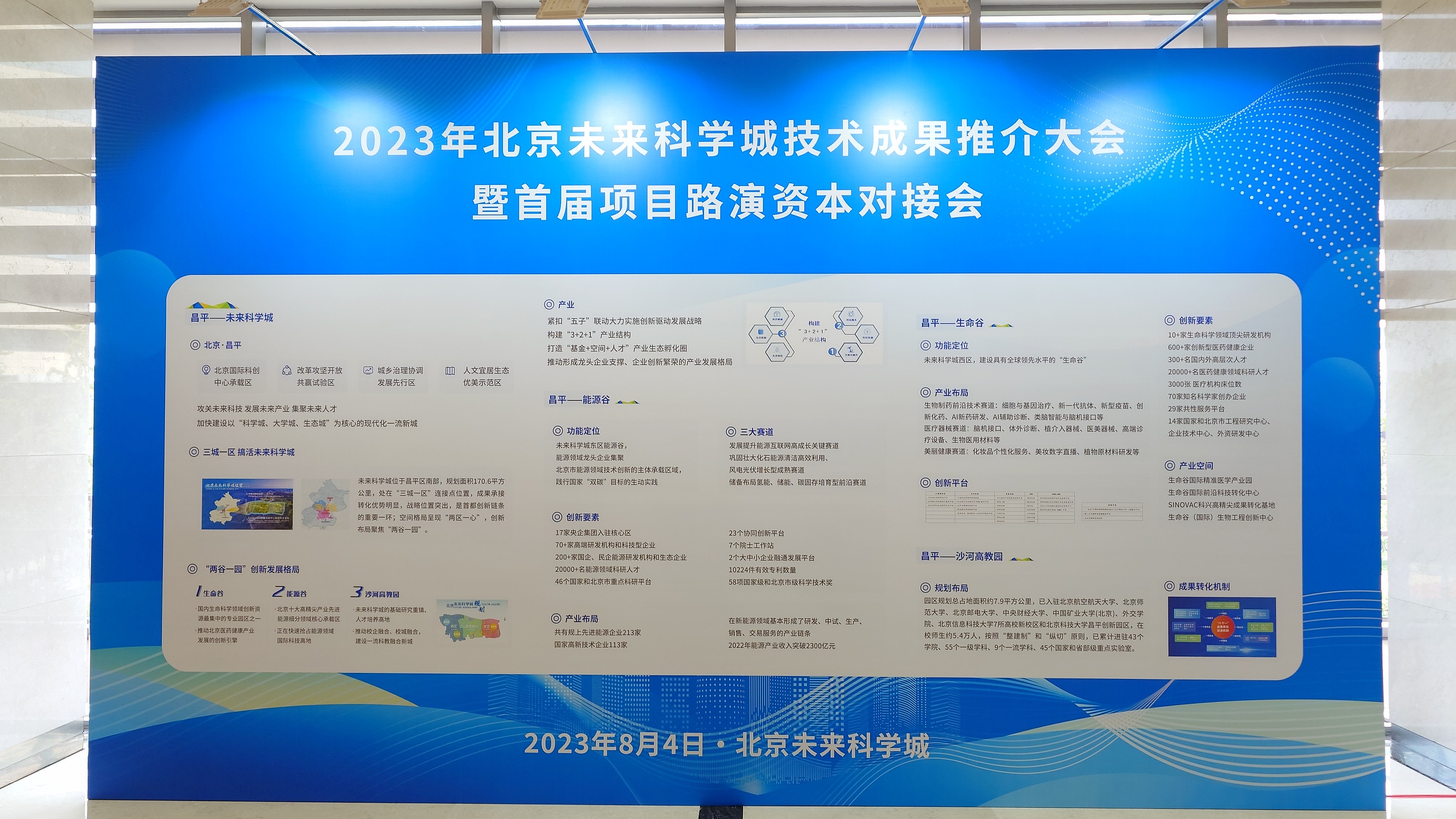 8月4日,以“创新驱动,智在未来”为主题的“2023北京未来科学城技术成果推介大会暨首届项目路演资本对接会”在昌平区未来科学城召开。大会首次集中展示了未来科学城2000余项技术先进、可转化性强的创新成果,并从中筛选出100余项具有影响力的重要创新成果进行现场展览展示,涵盖氢能、储能、光伏等领域,彰显“能源谷”硬实力。
