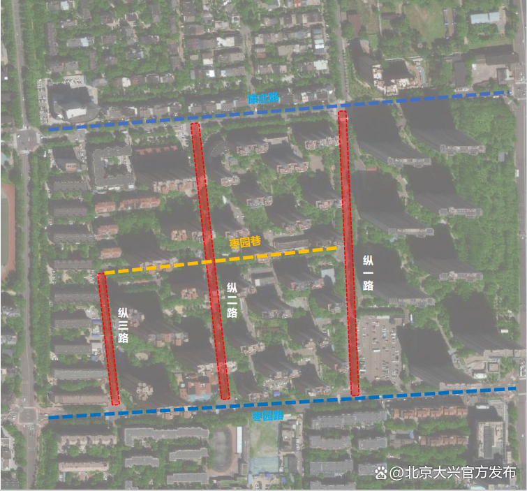 其中,纵一路西侧两端将增设“可阅读、可感知、可欣赏、可参与”的文化标识与景观体系;纵二路枣园巷路口新增围墙装饰;纵三路西北角增加坐凳等休憩设施。