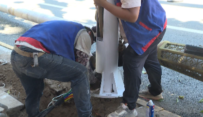 此外,区城管委对原有灯杆进行全部更换,卸除每根灯杆原有中国结,改为安装点间距为7.5mm的透明冰屏,该冰屏能依据不同需求更改屏幕内容,满足不同节日的宣传需求,工程预计8月中旬全部完工。