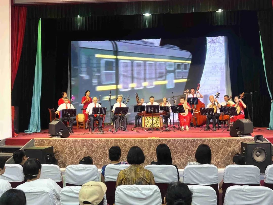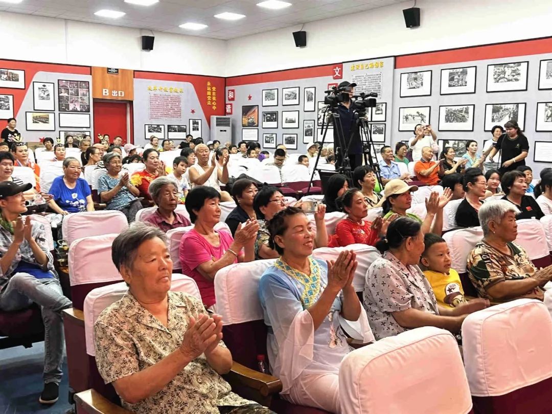 “村晚”在欢乐愉快的器乐合奏《喜洋洋》中拉开序幕,随后歌伴舞《领航新时代》、京剧《智斗》、三句半《防诈骗》等节目轮番上演,台上演员倾情演出,台下观众热情高涨,掌声不断,时不时拿出手机记录精彩瞬间。