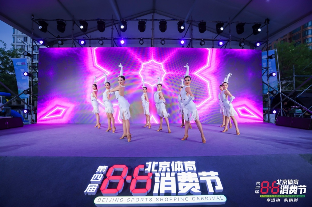 北京市健美操体育舞蹈协会更于8月5日线下嘉年华首日和8月8日启动仪式现场进行了精彩的表演,活动共邀请京津冀等地区10余只街舞、拉丁舞队伍,演出人员均由5-17岁少年儿童组成。小舞者们,用激情的舞步,精彩的动作,熟练的配合与高难度的编排,吸引了周围观众纷纷驻足欣赏,现场气氛热烈火爆,不时引起台下的阵阵掌声,一次又一次点燃了现场观众的激情,将“北京体育消费节”活动气氛推向了高潮。
