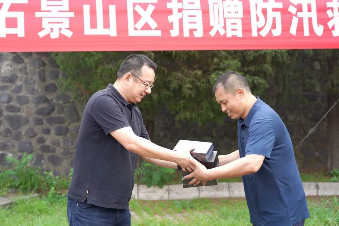 8月8日,区委常委、常务副区长李先侠代表区政府接受捐赠物资。此次中海地产集团为石景山区捐赠了污水泵20台,卫星电话10部,救生圈、雨衣、雨伞等防汛物资,价值约100万元,充分体现了驻区企业对石景山区受灾人民群众的关心关爱,同时也体现了央企的大爱情怀和担当精神。