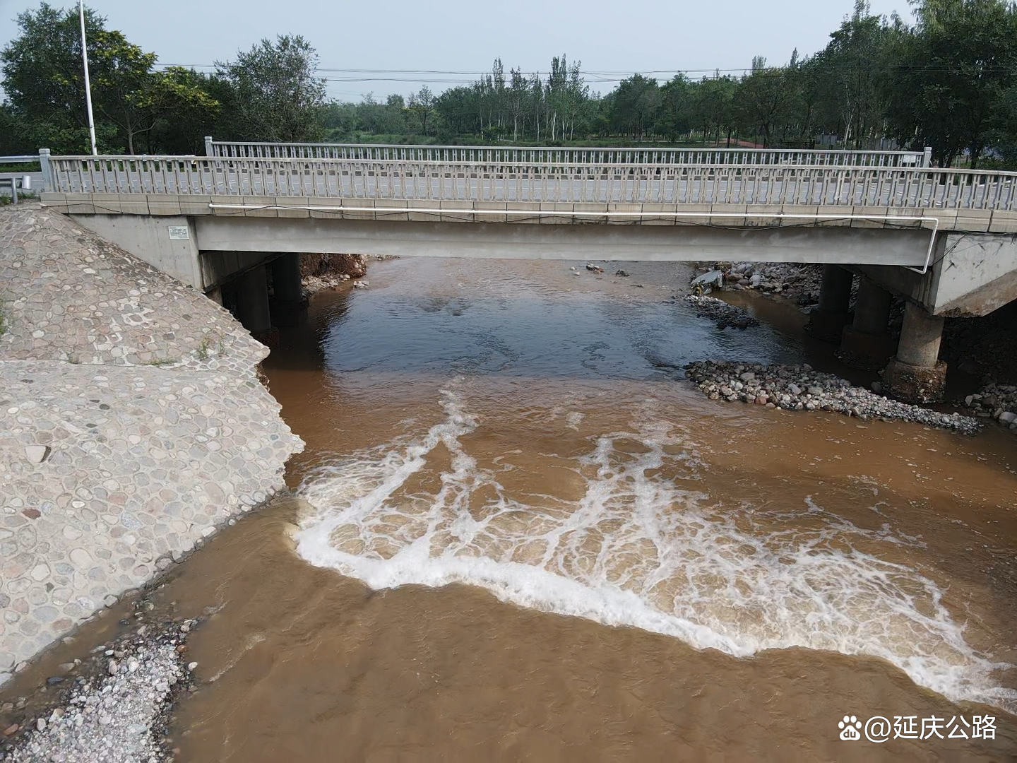 分局路网科科长于伟,身为党员冲在了防汛第一线。路网科负责山区11条路的应急抢险工作,在收到龙庆峡水库泄洪通知后,于伟第一时间前往旧小路古城西桥对桥梁各部位进行隐患评估。此时桥梁一侧的桥背回填和锥坡已经在洪水的冲刷下形成巨大的空洞,他们不顾桥梁坍塌的风险,毅然冒雨冲向桥梁的另一端查看桥梁损失情况进行隐患评估。确认桥梁通行安全存在隐患后,果断采取封控措施。