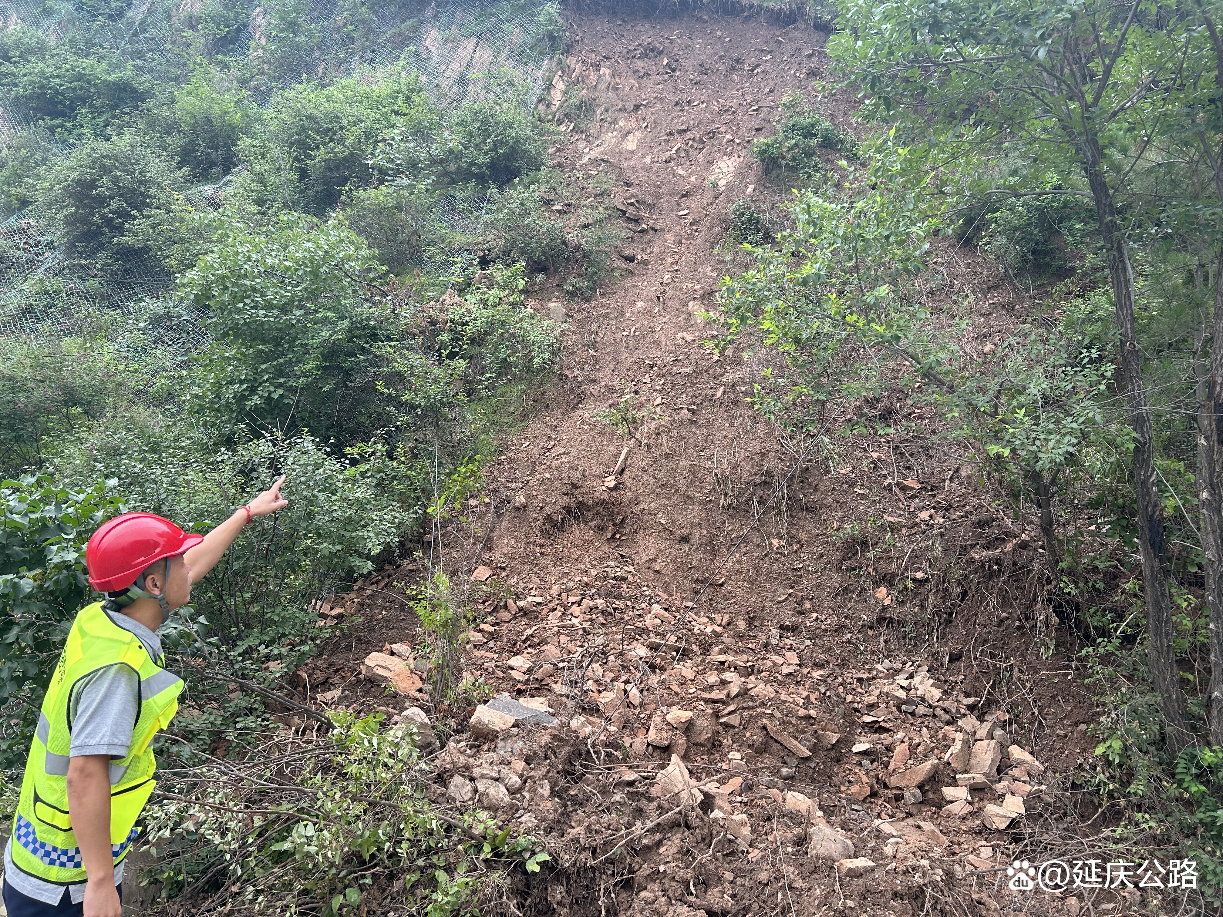 31日11时左右,四宝路K10+900-K11+800水泉子村段,山洪携带大量泥沙、断树上路,路面淤泥瞬间达到80-90公分,山洪越过钢板护栏,对路面及相关附属设施产生剧烈冲刷,车辆无法正常通行。十处员工侯旭峰马上向上级汇报现场情况,不顾孤身一人的情况下,果断对道路进行断路封控,封控到位后,救援人员也及时赶到,同志们看到侯旭峰时他浑身已经湿透,分不清头上是有惊无险的汗水还是冰冷的雨水。情况危急关头,并没有留下抢险的照片。