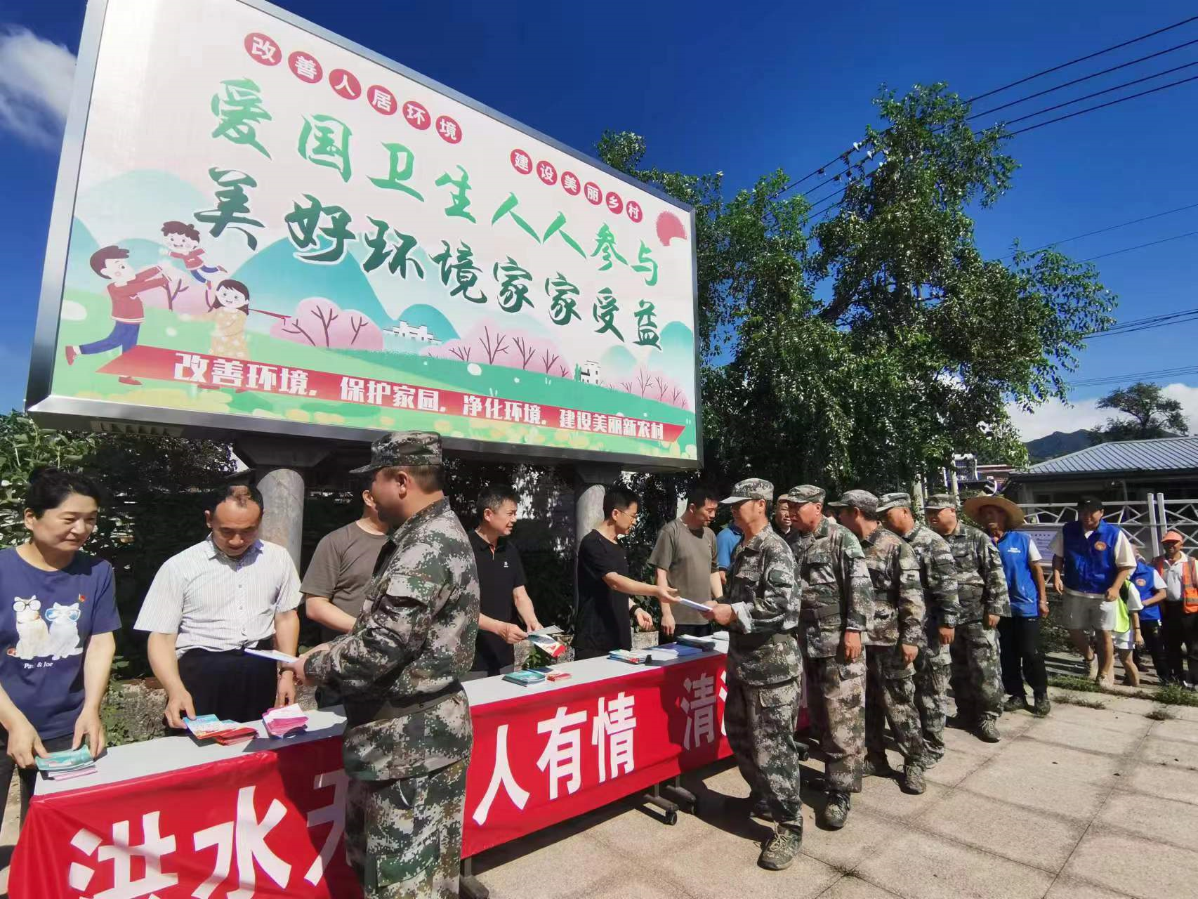 在延寿镇,17个包村工作队队员和村“两委”干部、志愿者、村民们一起开展“周末卫生日”主题活动。延寿镇受强降雨影响,山区村淤泥、垃圾较多,大家分工协作开展集中清理整治,改善村庄环境面貌,并消除了各类安全隐患。志愿者们还向村民们发放了宣传材料,大力宣传灾后传染病预防和环境整治的注意事项等。