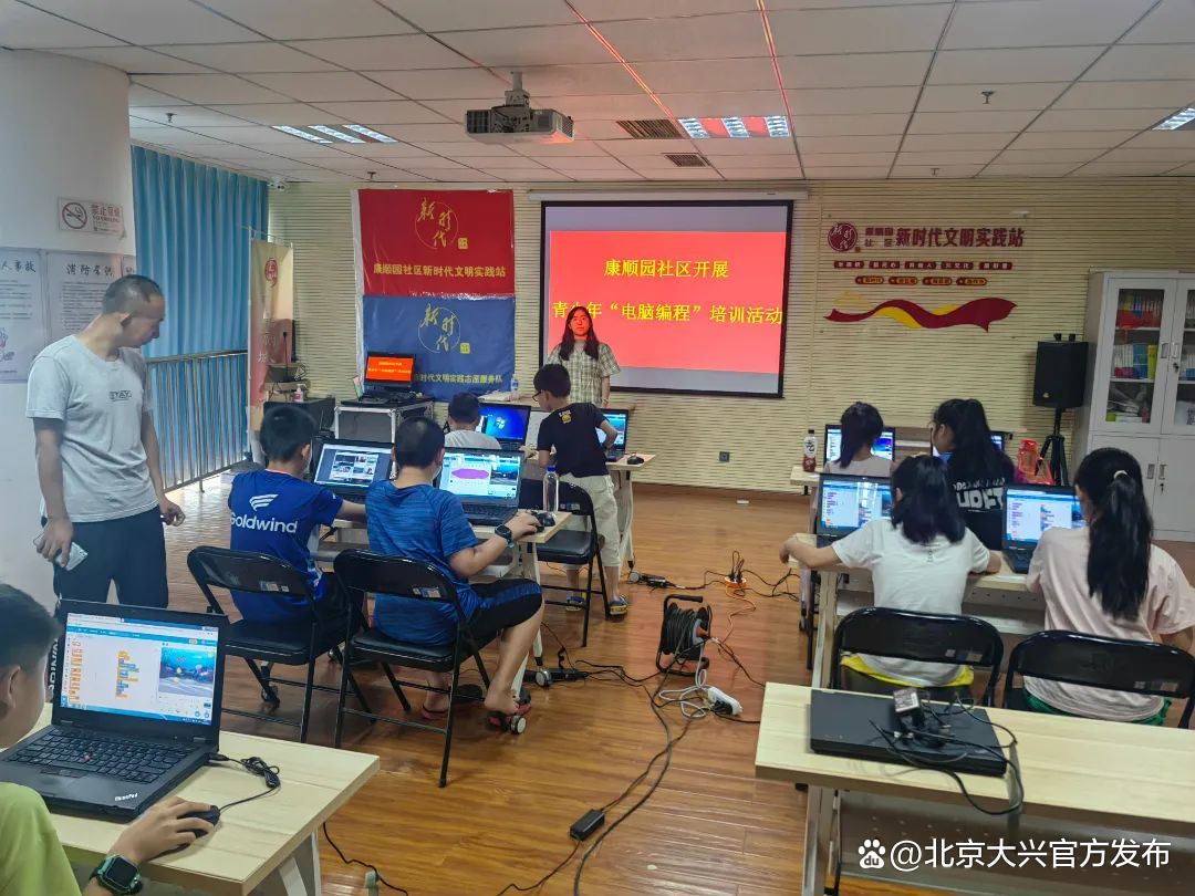 在康顺园社区10余名青少年也参与了电脑编程培训活动。课堂上,老师通过问答形式了解孩子们对编程的认知程度,并介绍了什么是编程,将编程知识和逻辑思维的学习融入小游戏、小动画、小操作中,通过键盘处理各种角色,使静止的画面动起来,让孩子在学中玩,在玩中学,跟随着编程老师的讲解,认真完成各个操作。