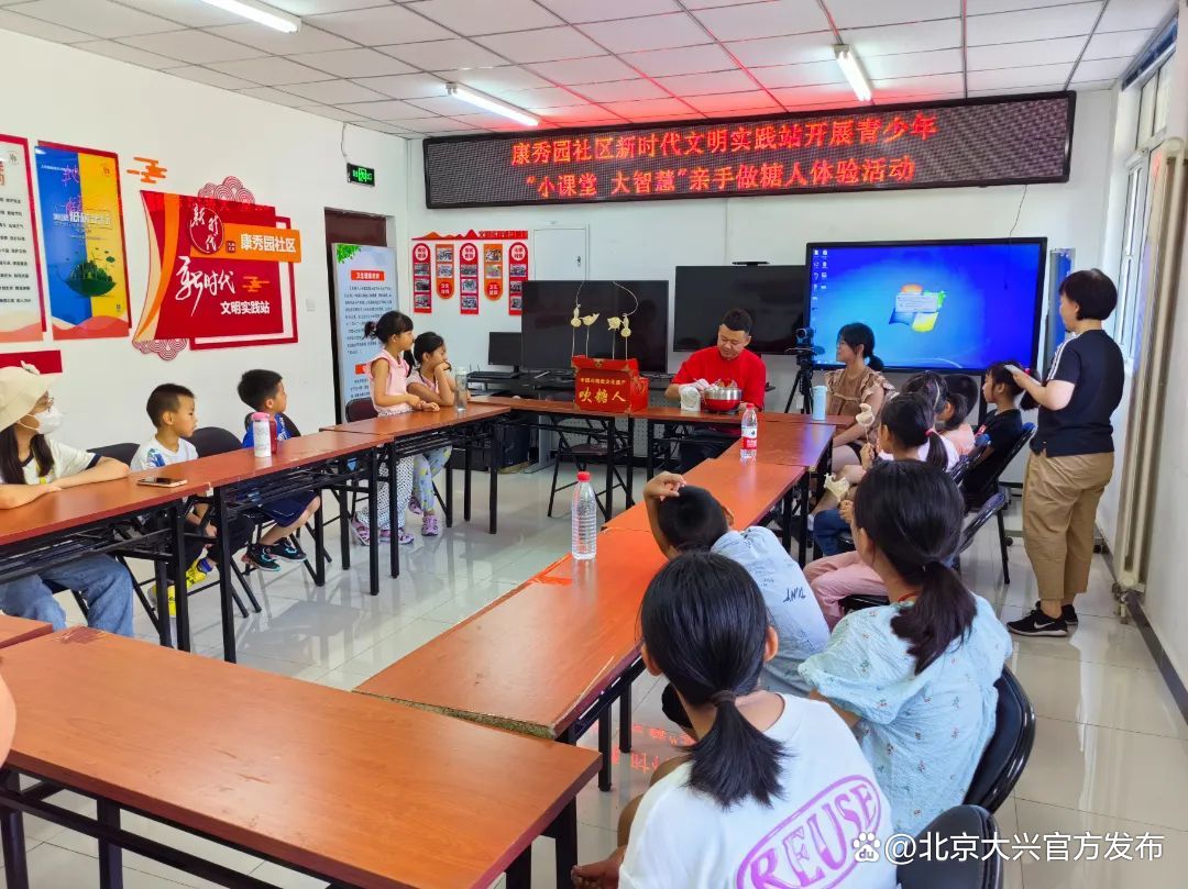 “吹、吹、吹,很好,继续吹,”近日,康秀园社区开展青少年“小课堂 大智慧”糖人制作体验活动。在非遗传承人的引导下,小朋友们一边吹,老师一边捏,不一会一只栩栩如生的兔子就成形了。