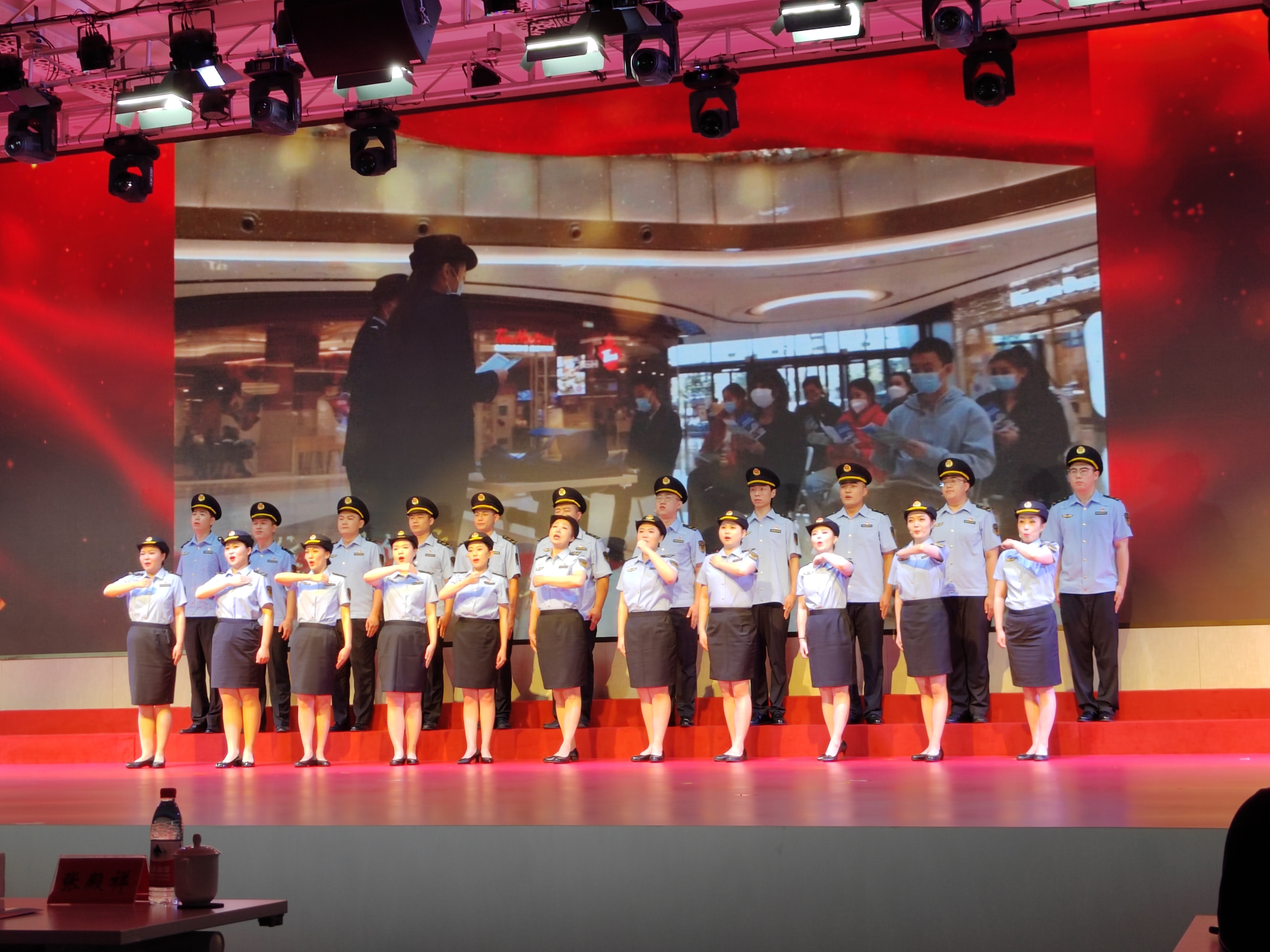 参赛队员克服酷暑,团结一致,积极参加排练,在决赛舞台上语调激昂、歌声嘹亮,在歌声中回望革命先辈用理想和信念丈量的伟大远征,回答着丰台市场监管人心中关于初心的声声叩问,呈现出一场艺术与法治主题并存的视听盛宴。