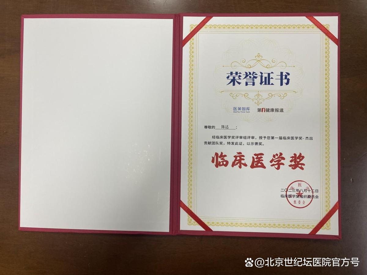 由医策智库联合第一健康报道共同举办的“2023首届临床医学奖表彰传播大会”于8月12日在北京隆重举行,首都医科大学附属北京世纪坛医院委派代表出席颁奖仪式。