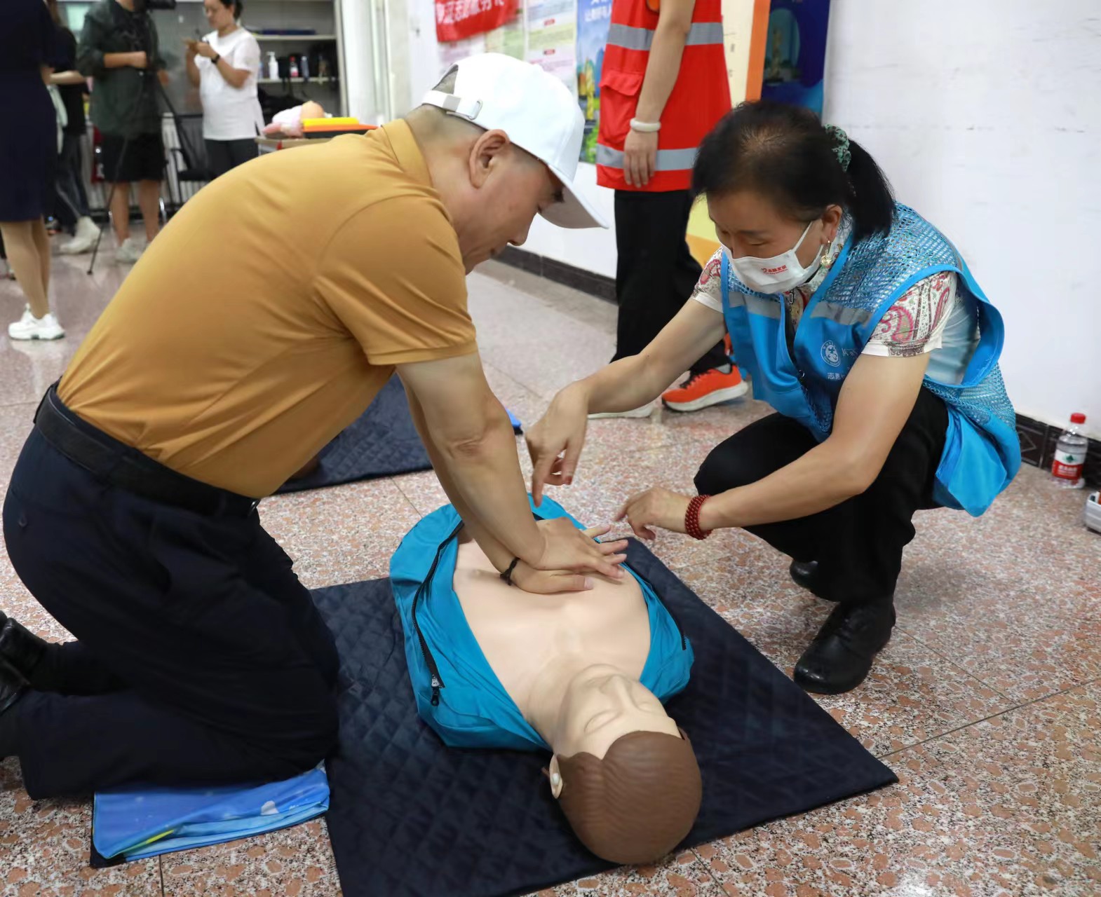 “我们这次主要带来的是防灾和急救知识,比如海姆立克急救法,包括逃生绳结的打法等内容,讲解的过程中,村民对心肺复苏、包扎等知识比较感兴趣,我们也一并进行了介绍。”海淀区红十字海蓝救援队队长王征介绍道。“我是第一次学习心肺复苏,以前经常在新闻里见到救人的场景,今天有专业人员指导学习,自己也想学习一下,以备不时之需。”参与活动的村民说道。
