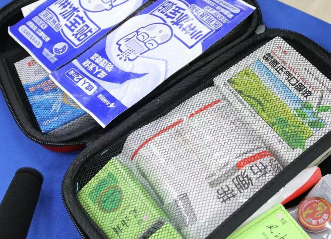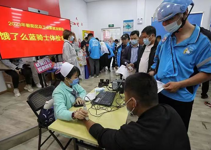 前不久,驿站组织了一次骑手体检,体检仪器直接搬进了驿站。北京CBD总工会还为骑手每人配发了一个暖心药包,包含冰贴、常用药品等。骑手不仅可以自用,在配送过程中如遇到有人中暑,也能紧急施救。驿站还定期对骑手进行交通安全、应急措施等教育培训,提高骑手自救与互助的能力。