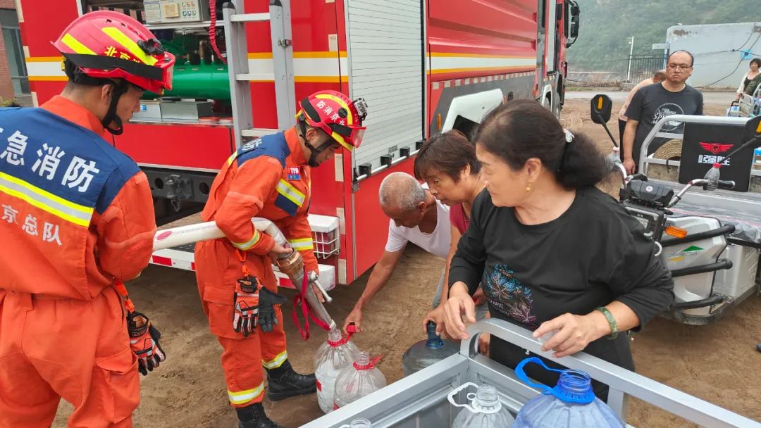 近日,受汛情影响,昌平区某村居民用水困难,村民生活受到了严重影响。为缓解村民用水难题,区消防救援支队连续7天共调派10辆消防车装载饮用水前往,竭力帮助群众解燃眉之“渴”。