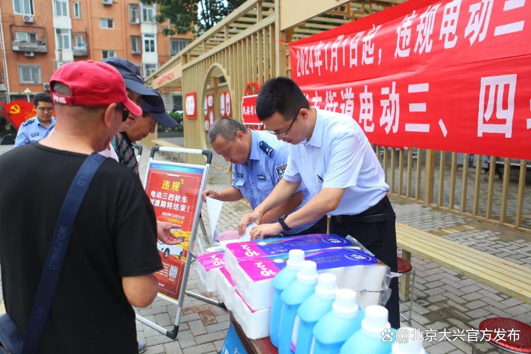 “我家的电动三、四轮车是否合规?”“违规的电动三、四轮如何处置?”“电动三、四轮车回收怎么操作?”……工作人员耐心解答居民提出的各种问题,普及电动三、四轮车管理的具体要求,引导群众尽快处置违规车辆,做到文明守法安全出行。