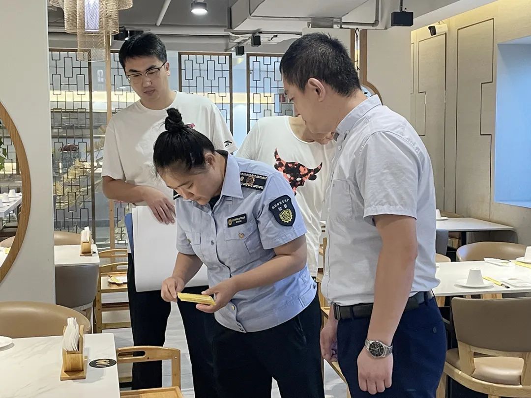 为促进市民养成文明用餐习惯,区商务局工作人员积极督查指导餐饮企业公勺公筷宣传氛围、是否主动提供公勺公筷、日常管理台账等相关情况。
