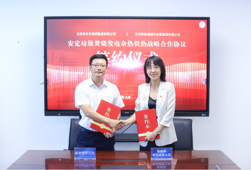 助力国家“双碳”战略在临空区逐步落地,响应北京市“十四五”能源发展规划,优化临空区绿色能源结构,8月16日下午,新航城公司下属北京新航城城市运营管理有限公司与北京安定生物质能源有限公司签署战略合作协议,推动安定垃圾焚烧发电厂余热长输供热项目落地临空区。