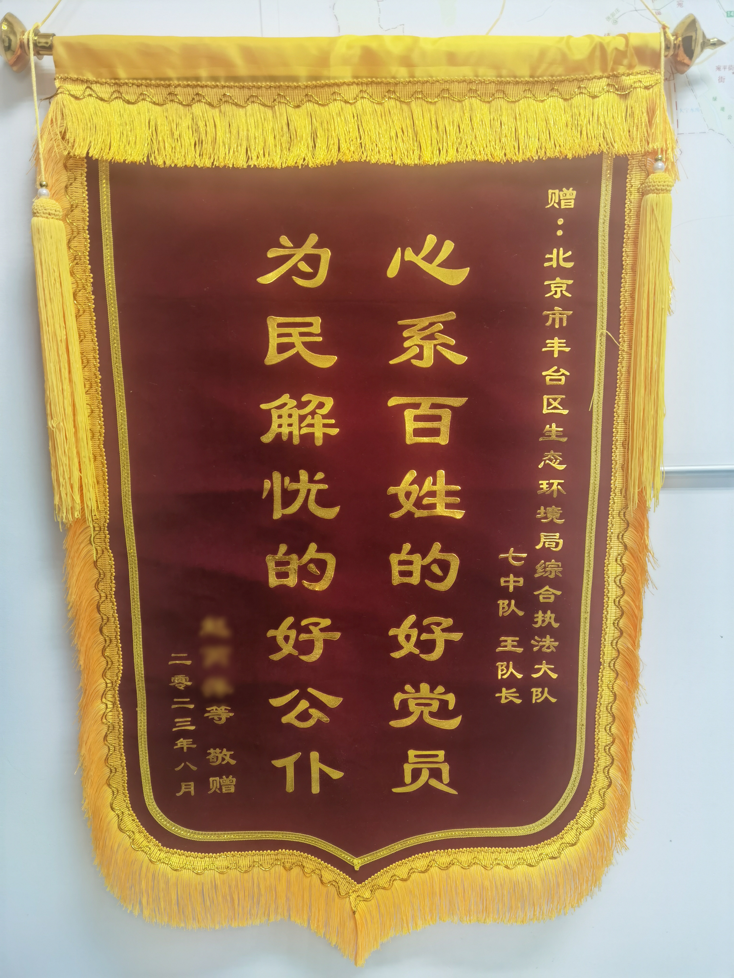 “心系百姓的好党员,为民解忧的好公仆!”近日,丰台区生态环境局收到一面锦旗。原来,外区一位居民打算到丰台购房,因为看中了槐新组团的无限发展潜力,但是又担心周边热电公司和高压电塔会有电磁辐射,在这位居民左右为难、难以抉择的时候,拨打了12345,区生态环境局按照“一查二测三科普”的工作方式,很快打开了百姓的“心结”,让诉求人放下包袱,坚定了选择丰台的决心。