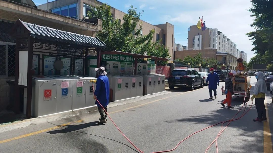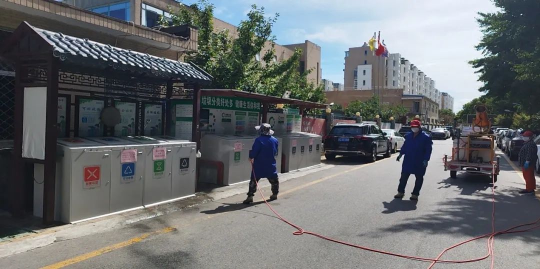 活动中,工作人员身穿防护服、戴上口罩、遮阳帽,开着药物消杀车,手拿消毒管,重点对垃圾桶、小公园等周边蚊蝇孳生地进行高密度巡回消杀,以彻底消除蚊蝇孳生地。