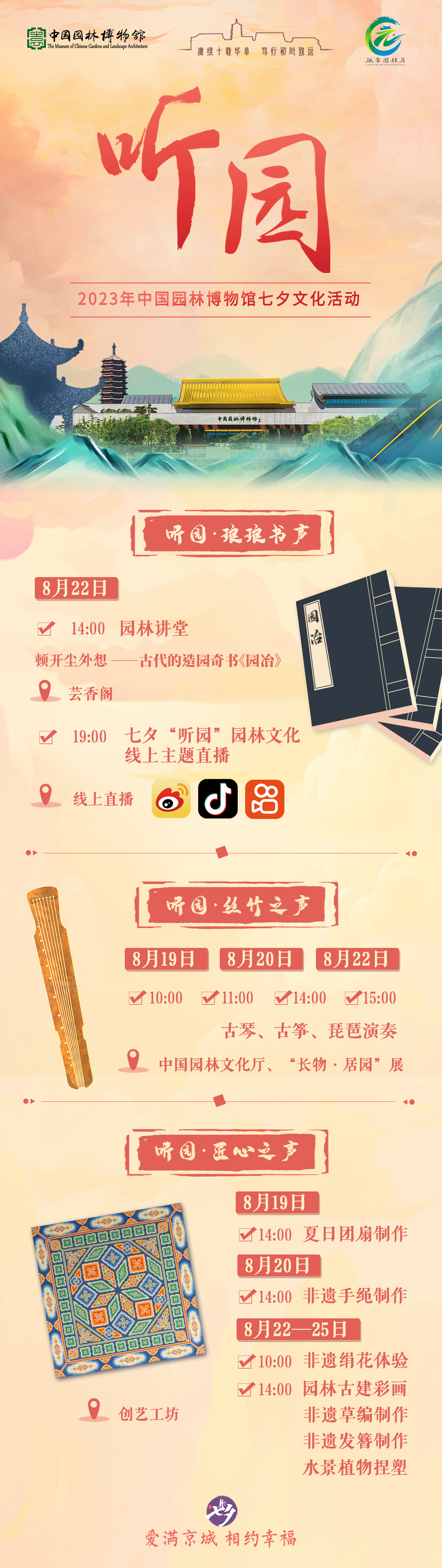 中国园林博物馆抖音、微博、快手同步播出,长按识别下方二维码,关注中国园林博物馆直播平台,或抖音搜索“中国园林博物馆”,一起线上观看!