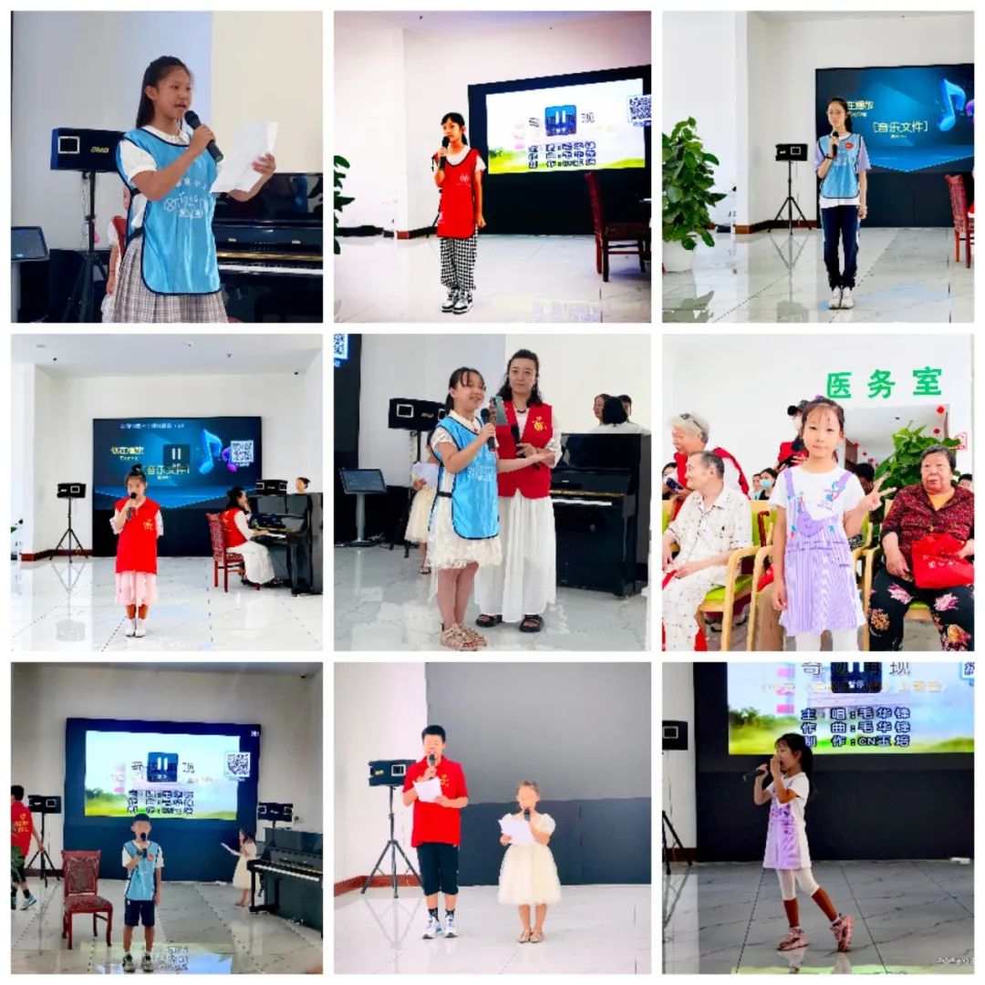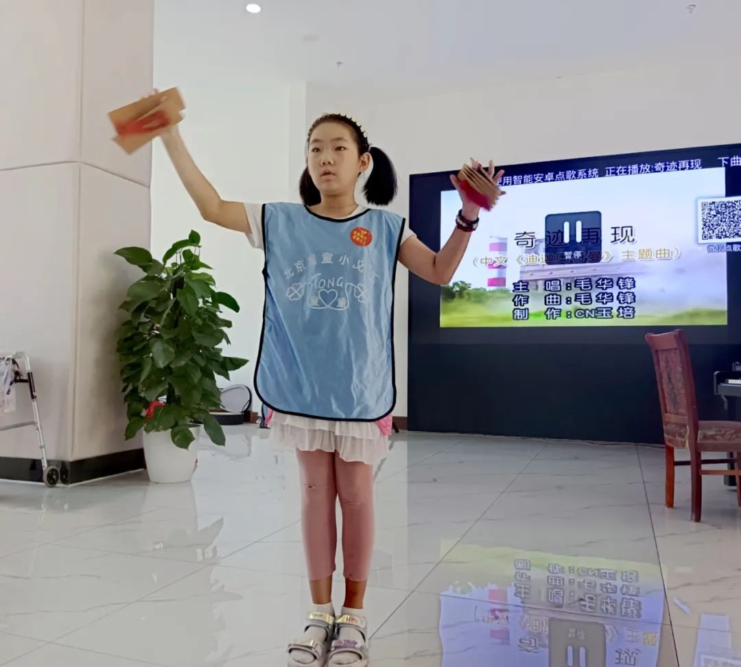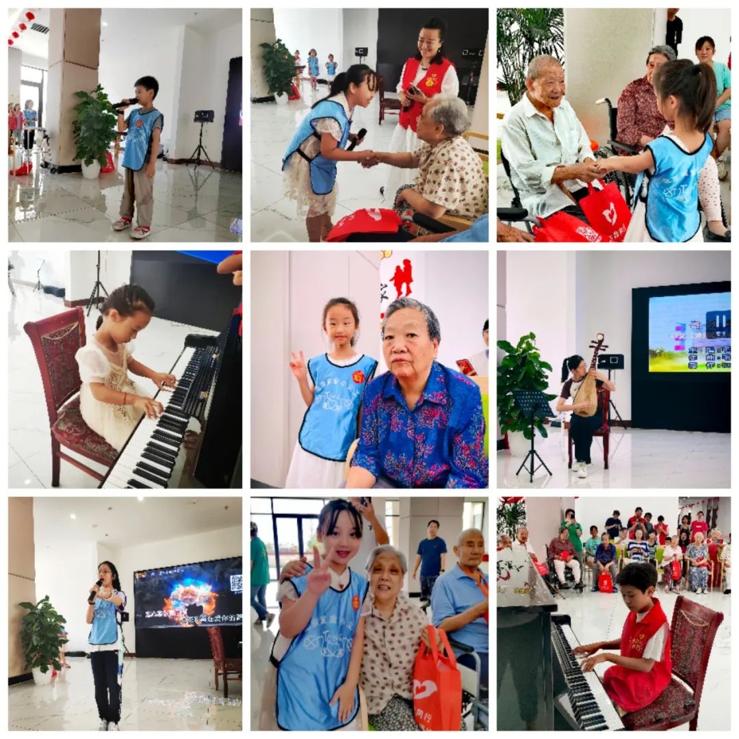 小志愿者准备了丰富多彩的节目,李昭睿-朗诵《乡愁》,熊瑷新-独唱《陪我长大》,马楷轩-钢琴演奏《水边的阿狄丽娜》《小狗圆舞曲》,妍妍-歌曲《我向祖国敬个礼》,乔乔-钢琴演奏《坦诉》,马艺洋-朗诵《木兰诗》,王品茹-歌曲《桃花诺》,李坤锴-歌曲《奇迹再现》,丁琳曦-歌曲《如果我是格桑花》,王宇凡-朗诵《将进酒》,刘帆-琵琶《送我一支玫瑰花》,田聆曼-朗诵《如果信仰有颜色》,蔡一帆表演了深受老人喜欢的快板《同仁堂》。阵阵掌声和叫好声把活动推向了高潮,老人们连声说:“好,好,欢迎你们下次还来。”