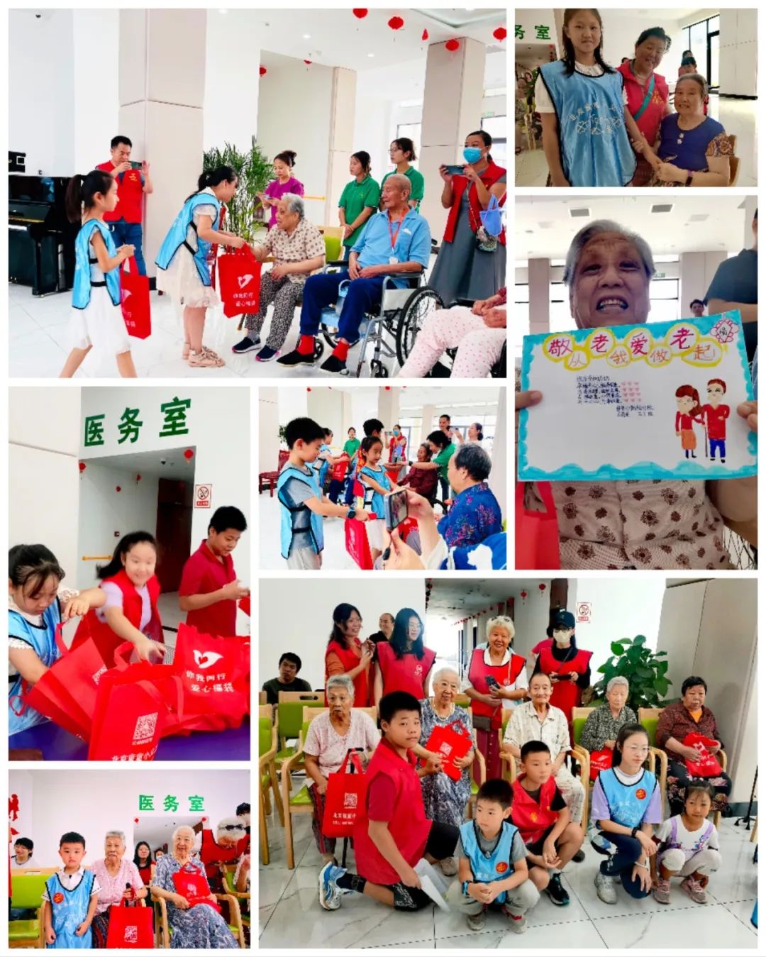 8月20日,“党报走进敬老院”活动部组织“你我同行”慈善义工队、童童义工队的40多名志愿者,走进大兴区中晟百晨养老院,为居住在这里的老人献上文艺表演,赠送了袜子、手绢、香皂等生活用品,小志愿者们还带来了亲手绘制的贺卡,送到了每位老人手中。