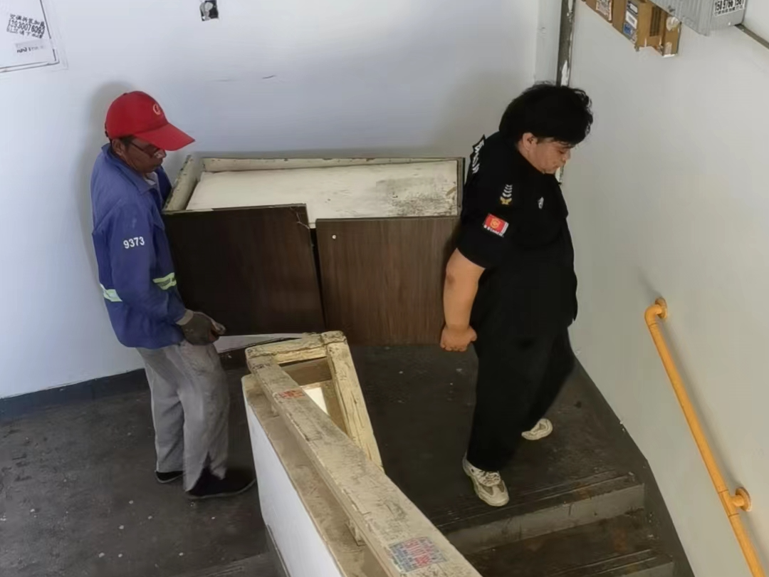 清理中,工作人员耐心做好解释工作,反复向居民宣传堆物堆料行为的危害,对于废旧家具等大件且易引发火灾的堆物由工作人员统一帮清,开启“搬家式”清理。
