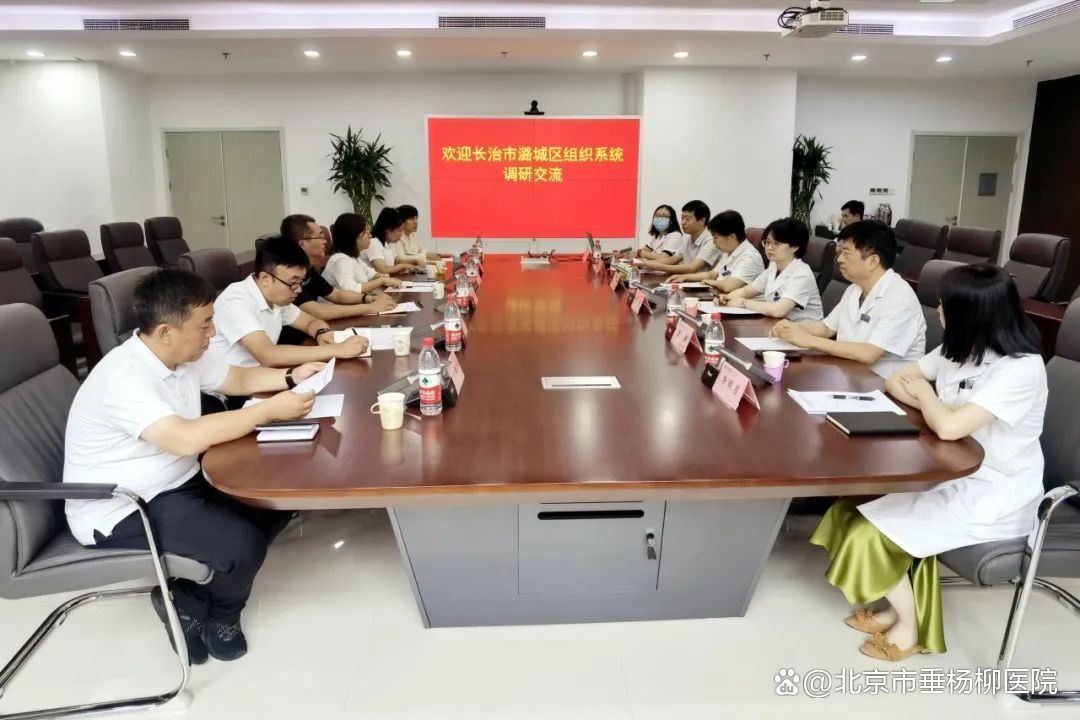 座谈会上,徐果代表区卫健委,对长治市潞城区组织部一行的到来表示欢迎。赵伟代表北京市垂杨柳医院,向长治市潞城区组织部一行介绍了医院发展情况,重点围绕医院建设、人才队伍建设和学科建设情况进行了汇报讲解。郝志斌代表长治市潞城区组织部,对区卫健委和医院的介绍表示感谢,他表示,通过此次调研,开阔了工作思路,巩固了共建关系,希望在今后的工作中加强两地的紧密联系,为京晋百姓做好服务。