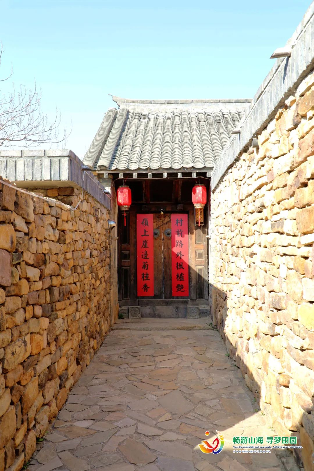 在四合院的民宿的门口,石墙、青瓦、红灯笼……颇有些“不知有汉,无论魏晋”的感觉。