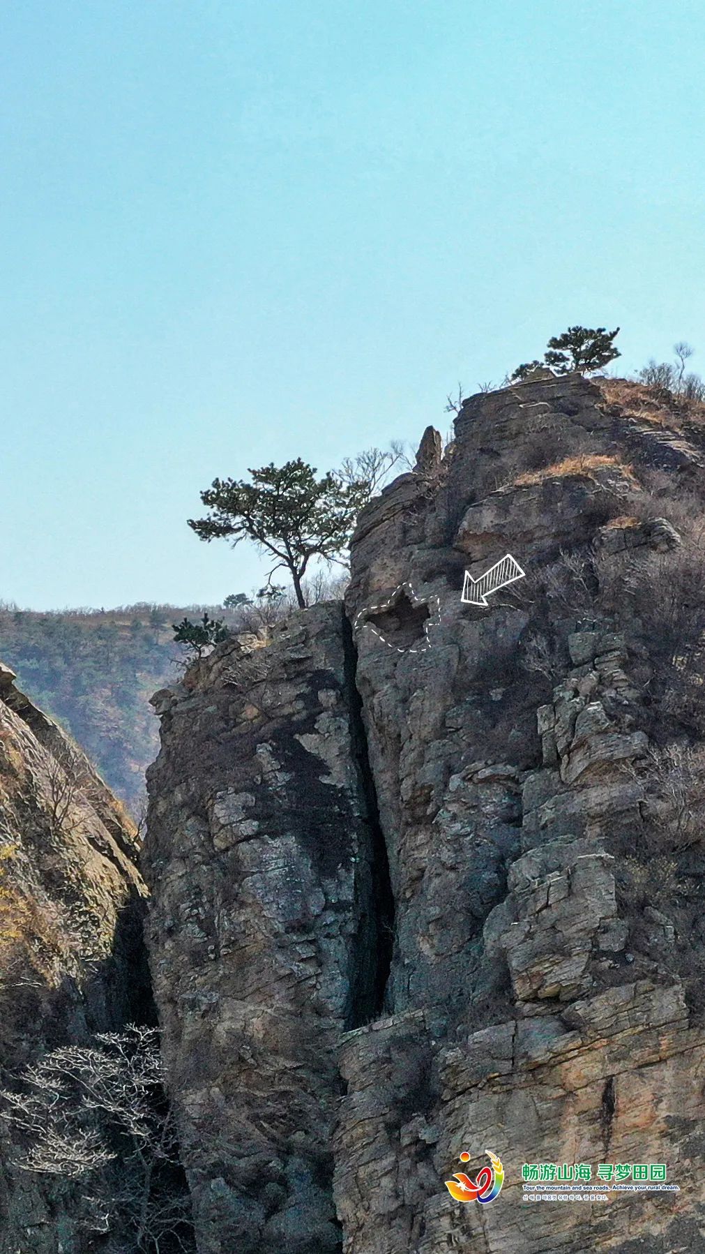 在悬崖峭壁之上有一个石孔,形似鸽子,大批野生鸽子就在此繁衍生息,因此这里被称作 “鹁鸽塘” 。