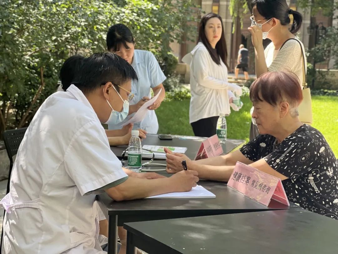 在义诊现场,富锦社区卫生服务站臧伯颖医生认真地为老年人进行免费的义诊,项目包括听诊、问诊、健康咨询、用药咨询等。护士长孙营则开展测量血压、血糖等多项检查服务。义诊活动针对辖区居民老年人较多的特点,对老年人多发疾病,如心脑血管疾病、糖尿病、骨科疾病等,进行了详细讲解。有着20余年三级医院临床经验的臧医生更是发挥自己的专长,针对心脑血管相关疾病的日常预防,对老年人进行健康饮食、科学运动等指导。此次义诊共为20多位辖区老人送去了医疗服务。