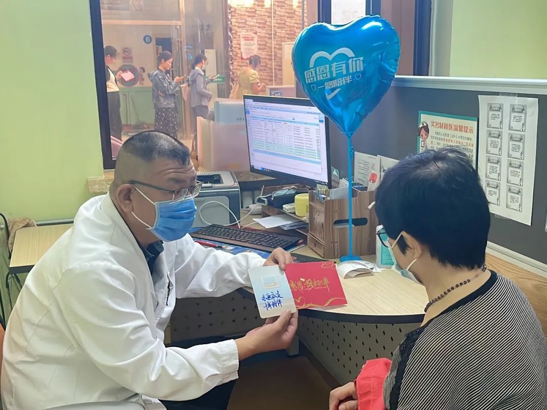 杨阿姨是全科家医团队的签约患者,今天也幸运的收到了健康礼品。杨阿姨拿着制作精美的健康卡片很是激动,她说自己在中心就诊已经有7、8年了,也算是中心的“老熟人”了。这些年来,她看到了也感受到了中心的发展和变化,环境越来越干净,医生护士的技术和态度越来越好,各种先进的设备也越来越多,从最初简单的开药到现在随时随地都能联系自己的家庭医生,从最初简单的开药到现在随时随地都能联系自己的家庭医生,而且诊疗细致又专业,不仅仅方便了她的生活,更让她和家人有了踏踏实实的安全感。像杨阿姨这样的老患者、老朋友还有很多,在中心建院十周年之际,大家在赞叹中心发展的同时也送上了祝福。